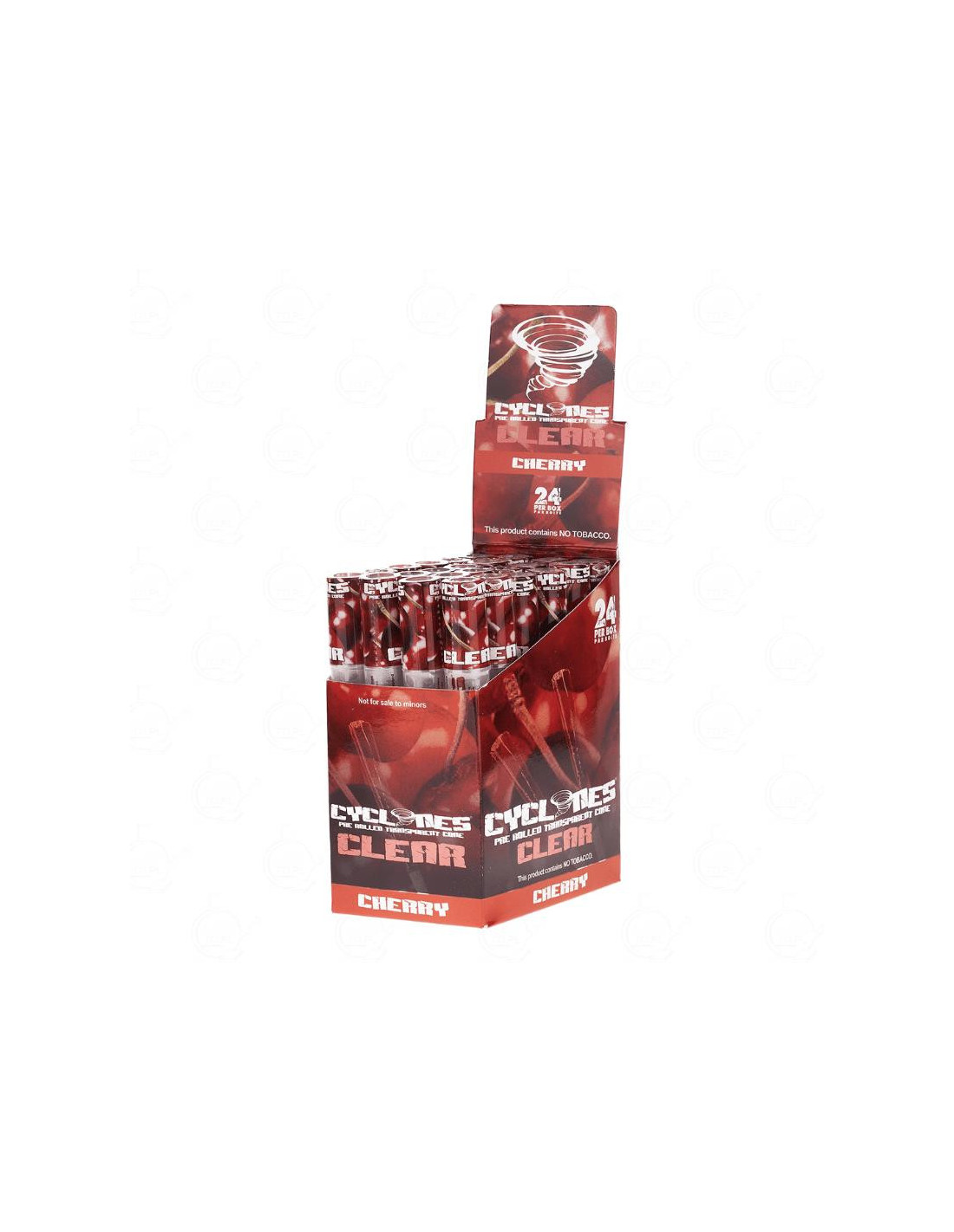 Despierta tus sentidos con el Cyclones Clear Cherry, conos pre-enrollados de cáñamo 100% natural en tamaño 1¼ Size. Con una boquilla de madera roja re-utilizable, cada calada es una explosión de sabor a cereza. Cada unidad incluye 24 tubos, listos para rellenar y disfrutar.