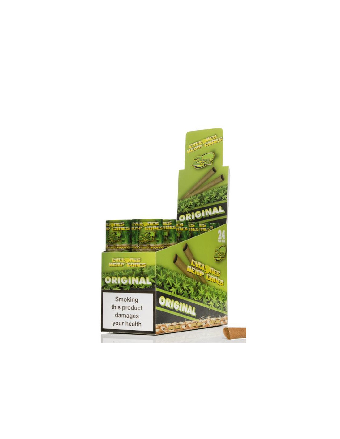 Los Cyclones Hemp Cones Cane marcan el estándar en la experiencia de fumar. Hechos de hoja de cáñamo tostada y totalmente libres de tabaco, estos conos garantizan una experiencia auténtica y pura, perfecta para el conocedor de fumar. Con una boquilla reutilizable de bambú, estos conos son tan prácticos como placenteros.