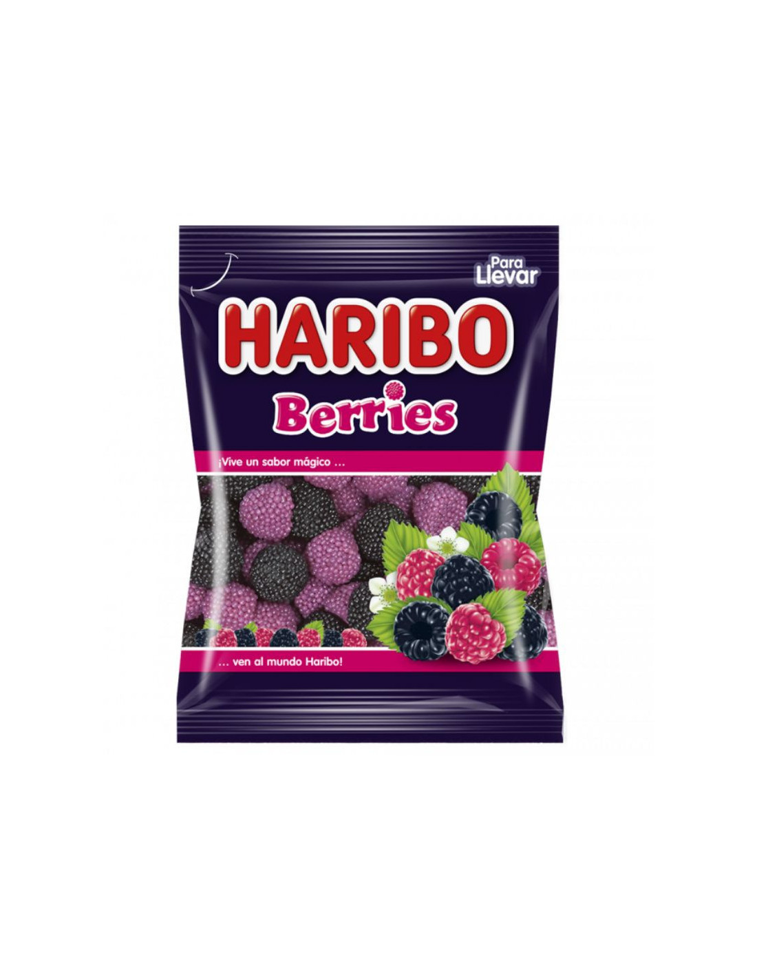 - Presentación: Caja con 18 bolsas individuales de Haribo Berries, listas para su venta.